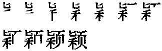 颖yǐng毛笔的笔头儿,这里指写信:兹修寸幅,恭贺升祺,并求金允。临~不胜待命之至。(九九·1277) 古代名物 > 花卉類 > 總屬部 > 諸名 > 穎2 穎2 yǐng 草木的嫩芽。南朝宋·何承天《芳樹篇》:“翠穎凌冬秀,紅葩迎春開。”宋·蘇軾《新居》詩:“數朝風雨凉,畦菊發新穎。” 颖yǐng〖名词〗 植物小穗基部的两枚苞片。这里指小草(1)。《北山移文》:于是丛条瞋胆,叠颖怒魄。——在这种情况下,众多的树枝气破了胆,重叠的小草连魂魄都发了怒。 颖yǐng❶ 谷穗的末端。代指谷穗。《诗经·大雅·生民》:“实坚实好,实~实栗。”《史记·鲁周公世家》:“天降祉福,唐叔得禾,异母同~。” ❷ 物的尖端。《史记·平原君虞卿列传》:“使遂得蚤处囊中,乃~脱而出。”(遂:毛遂。蚤:通“早”。) ❸ 才智出众,聪慧。《三国志·吴书·陆逊传》:“皆当世秀~,一时显器。”陶潜《饮酒》之十三:“规规一何愚,兀傲差若~。” 颖*穎;△頴yingD3B1 ❶本指禾穗的尖端,后泛指细而长物的尖端:脱~而出/这支毛笔是长~狼毫。 ❷才能出众;聪敏:~慧/~悟。 才能出众 才能出众颖(才颖) 盖世(~英才) 才大(~心细;~压主) 才俊 才秀 才畯 材杰 卓异 昂霄 通神 豪英 英逸 翘秀 鹤立鸡群枪枪铰铰 才能秀出 龙跃凤鸣 才能超出同辈:褎然举首 蔚为举首 才能超群:英姿迈往 英特迈往 政治才能非凡:萧曹避席 才能杰出:俊英 鸿才远器 才高瑚琏 才雄管乐 学识丰富,才能杰出:学富才雄 才能杰出,独一无二:国土无双 才能杰出,世上罕见:雄才不世 才能出众,行事敏捷:高材疾足 学问、才能超过一般人:加人一等 人品、才能超出众人:人才出众 人材出众 才能突出,超过众人:卓荦超伦 才能超过古今:超今冠古 才能超群,卓然不凡:颖迈 才能拔萃超群:贯斗双龙 人才出众,不同寻常:楚楚不凡 才能出众,豪放而不受约束:卓荦不羁 才能、成就等超越世人,十分罕见:横绝一世 横绝一时 横出一世 才能出众,无人能比:才调无伦 ☚ 才能多 才能小 ☛
