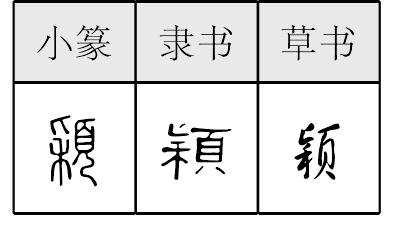 yǐnɡ穎,形声,从禾,頃声,本义为禾穗的末端,引申为某些植物的带芒的谷穗、某些小而细长的物体的尖端、才智出众等。俗字作“頴”。《异体字表》以“頴”为“穎”的异体字。《简化字表》把“穎”类推简作“颖”。新颖,新奇别致,不同于一般。 |