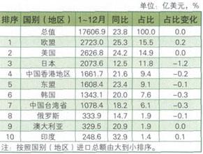 释义 | 加工贸易 中国的加工贸易业务(包括采料加工、进料加工)由省级或省级以下的外经贸主管部门审批,但开展食糖、棉花、植物油、羊毛、天然橡胶、原油等国家对加工贸易进口实行总量平衡管理的加工贸易业务,必须经加工贸易经营企业注册,地省级外经贸主管部门批准。 中国海关对加工贸易实行按商品分类管理:禁止类是指《中华人民共和国对外贸易法》规定禁止进口的商品,以及海关无法实行保税监管的商品;限制类是指进口料件属国内外价差大且不易监管的敏感商品;允许类是除上述两类之外的其他商品。 中国海关对加工贸易企业实行分类管理,并且对名单实行动态管理。 2006年进口来源前十位 2006年出口市场前十位 2006年前十位贸易伙伴 中国进出口贸易总额增长 |