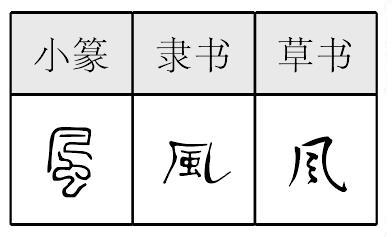 ❹ 八面来风|八面威风|把酒临风|败化伤风|捕影拿风|不正之风|长雨阑风|倒舵随风|道骨仙风|甘拜下风|甘伏下风|浩气英风|胡马依风|挥袂生风|见事生风|借事生风|劲节高风|空穴来风|朗月清风|两袖清风|乱俗伤风|满脸春风|满面春风|密不透风|抹月披风|穆如清风|弄月嘲风|弄月抟风|暖日和风|秋月春风|如沐春风|如坐春风|弱不禁风|弱柳扶风|省俗观风|时雨春风|树大招风|树高招风|宿水餐风|贪墨成风|谈吐生风|蔚然成风|尧雨舜风|一路顺风|咏月嘲风|玉树临风|愿拜下风|月晕而风|运斤成风|骤雨狂风|追电逐风|捉影追风 风fēng (篆) 古风、凤同一个字。高明《古文字类编》:“卜辞凤通作风。”甲骨文是形声字,左边画的是凤鸟之形,右上角为“凡”。秦小篆始有“风”,繁体为“風”。以“凡”为声,“虫”为形,其实与“虫”无关。“大块噫气,其名为风。”(《庄子·齐物论》)繁体“風”中之虫,秦小篆系旋风卷起尘土扶摇直上的象形,讹变为“虫”。所谓“风起虫生”,实为“风起尘生”。“虫”乃“尘”之通假。简体字中间一把叉(〤),既无“形”也无“声”,属记号字。以“风”为声符生成的字有: feng 阴平:枫(枫树) 疯(疯狂) 上声:讽(讽刺) 相关链接 岚,会意字,山气蒸润也。“瀑布杉松常带雨,夕阳彩翠忽成岚。”(王维《送方尊师归嵩山》)