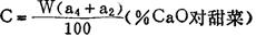 式中 W、C、a1、a2、a3的含意同上 a4——预灰汁碱度(%CaO) a5——回流汁碱度(%CaO) 3.无回流时预加灰量可由下式近似计算