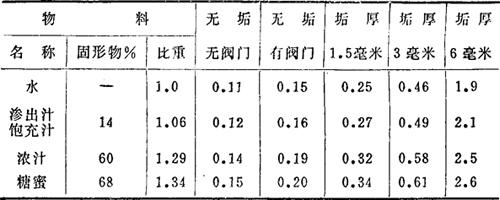 释义 | 加热器生产能力及压力降的计算 1.加热器生产能力计算 式中 A——加工甜菜量(吨/日) F——加热面积(米2) K——传热系数(千卡/米2·时·℃) a——被加热糖汁量(%对甜菜重) C——被加热糖汁比热(千卡/公斤·℃) T——加热用蒸(汁)汽温度(℃) t1——进加热器前糖汁温度(℃) t2——出加热器后糖汁温度(℃) 2.加热器内压力降由下式计算 式中 △P——压力降(米水柱) n——加热器程数 v——糖汁在管中流速(米/秒) 1——每根加热管长度(米) d——无垢时加热管内径(厘米) f——系数(见表5-7) 表5-7 管内径为30毫米,光滑钢管的f值 |