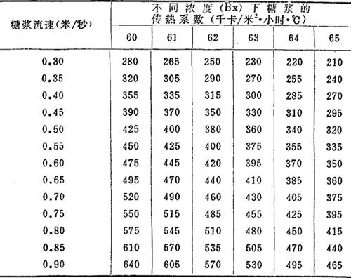 释义 | 加热器的传热系数 (1)表5-10及5-11为甜菜糖厂中考虑积垢在内的立式加热器的传热系数。由于具体条件不尽相同,表中数值并非恒定值。 表5-10 糖汁加热器的传热系数 (2)表5—10及5-11中传热系数均指加热器用蒸(汁)汽作为热源,如以凝结水作为热源时,传热系数将减小10~20%。 (3)甜菜糖厂加热器一般均垂直放置,一些试验结果表明,卧式加热器同立式比,提高传热系数可达20%。 |