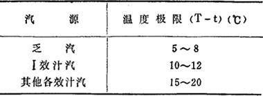 为避免过大的加热面积,应在汽源温度(T)同加热物料出口温度(t)间之差保持一较大值,但(T-t)有其极限值,表5-9为较经济地配置加热面积时的(T-t)值。