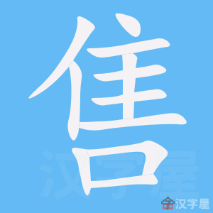 字源解说 售,篆文 = (隹,小鸟)+ (口,叫),造字本义:鸟雀叽叽喳喳地叫唤。 附 文言版《説文解字》:售,賣出手也。从口,雔省聲。《詩》曰:“賈用不售”。 附 白话版《说文解字》:售,卖出手。字形采用“口”作边旁,用省略了“隹”的“雔”作声旁。《诗经》上有诗句唱道:“贾用不售”。 引申线索