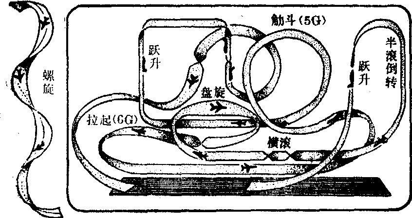 释义 | 飞行活动 飞行活动飞机在空中所作的各种形式飞行,统称“飞行活动”。飞机在空中不仅作平移运动,还有转动,如左右偏航、上下俯仰等。根据飞机转动的特点,可假想有三条通过飞机质心而又互相垂直的轴线,即纵轴、横轴和立轴(或称“竖轴”)(见图1)。飞机绕机体坐标系纵轴的转动,称“滚转”;绕横轴的转动,称“俯仰”;绕立轴的转动,称“偏航”。按飞行高度可将飞行活动区分为,超低空 (距地、水面100m以下)、低空(100~1000m)、中空(1000~7000m)、高空(7000~15000m)和超高空(15000m以上)飞行。按飞行速度区分,则有亚音速(马赫数M<0.75)、跨音速(M=0.75~1.2)、超音速 (M=1.2~5) 和高超音速(M>5)飞行。按气象条件,有简单气象和复杂气象飞行(指在云量7~10、云底高200~400m、水平能见度2~4km气象条件下的飞行)。按昼夜时间,有昼间(日出至日落之间)、夜间(天黑至天亮)、黄昏(日落至天黑)和拂晓(天亮至日出)飞行。按参加飞行的飞机数量,有单机和编队飞行。按自然地理条件,有平原、高原山区、山地和海上飞行。按飞行任务的性质,有训练、战斗和任务飞行。此外,在训练飞行中,还有起落航线、特技、编队、仪表和领航飞行等。 图1 飞机机体坐标系 图正中为随控布局飞机,能作六个自由度活动; 左上角为普通飞机,只能作四个自由度活动 飞行活动中,飞机于某段时间内以相对固定方式进行的运动状况称“飞行状态”; 飞机在运动中的瞬间状况则称“飞机状态”。最基本的飞行状态包括起飞、上升、平飞、下滑和着陆。飞机从开始滑跑至离开地面(拉起)、并加速爬升到一定高度(一般为25m)的加速运动过程,称“起飞”。飞机从一定高度(一般为25m)下滑、拉平、平飞减速、飘落和地面减速滑跑、停止的减速运动过程,称“着陆”。除上述最基本的飞行状态外,还有侧滑及各种特技。飞行时,飞机纵轴与飞行方向不一致的飞行状态,称“侧滑”。一般应避免侧滑,但有时又有意操纵飞机带侧滑,以修正编队飞行的间隔或侧风对着陆的影响等。飞机按一定运动轨迹,作飞行姿态(飞机相对于地面的角位置)、高度、速度、方向等不断变化的飞行,称“特技飞行”。特技飞行是歼击机战斗技术动作的基础。特技飞行中最常见的特技飞行状态有: ❶盘旋 飞机在水平面内以不变的速度和坡度所作的圆周飞行。 ❷俯冲 飞机沿较陡的倾斜轨迹作直线加速下降的飞行。 ❸跃升 飞机以较大上升角(>30°)作直线上升,以迅速取得高度的飞行。 ❹觔斗 飞机在垂直面上作轨迹近似封闭椭圆曲线的飞行。 ❺横滚 飞机向左或向右绕机身纵轴滚转360°的飞行。 ❻螺旋 亦称“尾旋”,飞机绕自身纵轴旋转、同时飞机重心沿着半径很小的螺线急剧下降。螺旋为失速情况下的一种不正常飞行状态,但为了让飞行员体验及掌握改出方法,也常作为特技飞行训练内容。此外,尚有急上升转弯、半觔斗翻转、半滚倒转、斜觔斗等及轨迹更复杂的特技飞行状态(见图2)。各种飞行状态对飞行人员的生理、心理影响及要求也有所不同。现简介几种飞行活动的特点及其航空医学问题如下。 图2 特技飞行 起落航线飞行 指飞机起飞后按规定航线、高度、速度和预定转弯点飞行一圈,然后着陆的飞行过程。它是一切飞行活动的基础,藉此可训练飞行员掌握飞机起飞、转弯、上升、平飞、下滑、目测和着陆等基本驾驶技术。起飞和着陆的时间短、动作多、难度大。例如,在着陆阶段,从开始拉平到平飘接地的十几秒钟过程中,飞行员必须及时正确判断不断变化着的飞机离地高度、着陆方向、前进速度、下沉速度和飞机姿势等,并进行相应操纵动作,才能使飞机准确而平稳地接地滑跑。目测和着陆也是飞行训练中的一个难点,且其技术容易消退,故在训练中须不断巩固和强化。着陆阶段也最易发生事故,约占全部飞行事故的40~50%,且多见于飞行经验在50小时以内者。因此,要求飞行员应具有良好的注意力分配、距离判断和手足协调能力,并须精力充沛,才能完成此动作。 编队飞行 指两架或两架以上的飞机在一架长机的指挥下,保持一定间隔(指横向距离)、距离(纵向距离)和高度差(垂直距离)的随同飞行。飞行中,僚机的高度、速度和状态均以长机为依据,以便在作战时能密切协同,相互掩护。编队飞行中,长、僚机的转弯半径不同,其相对关系位置不易保持。飞行员必须密切观察、及时发现协同飞机相对运动的微细变化,准确估量飞机运动惯性力的大小,实施有提前量的操纵方法。如掌握不准、误差较大或违反操纵规定,也易发生空中相撞事故(约占全部相撞事故的40%)。编队飞行的生理心理负荷特点是,飞行员的视觉活动频繁、精力高度集中。 仪表飞行 指飞行员完全根据仪表指示判断飞机状态所进行的飞行活动,是掌握复杂气象飞行和夜间飞行技术的基础。作仪表飞行时,飞行员只能依靠众多仪表所指示的信息进行综合判断,并及时轻柔地操纵和修正,始能完成; 由于不能利用平日熟悉的外界景物判断飞机状态,容易发生飞行错觉而威胁飞行安全。要求飞行员必须具有充沛精力、良好的注意力分配和分析综合能力,并经过预防和克服飞行错觉的训练。 高空飞行与超高空飞行 一方面具有空气阻力小、耗油少、气流平稳和能见度好等有利条件。但另一方面,由于高空大气压力低、空气稀薄、温度低等环境因素,也给飞行活动带来