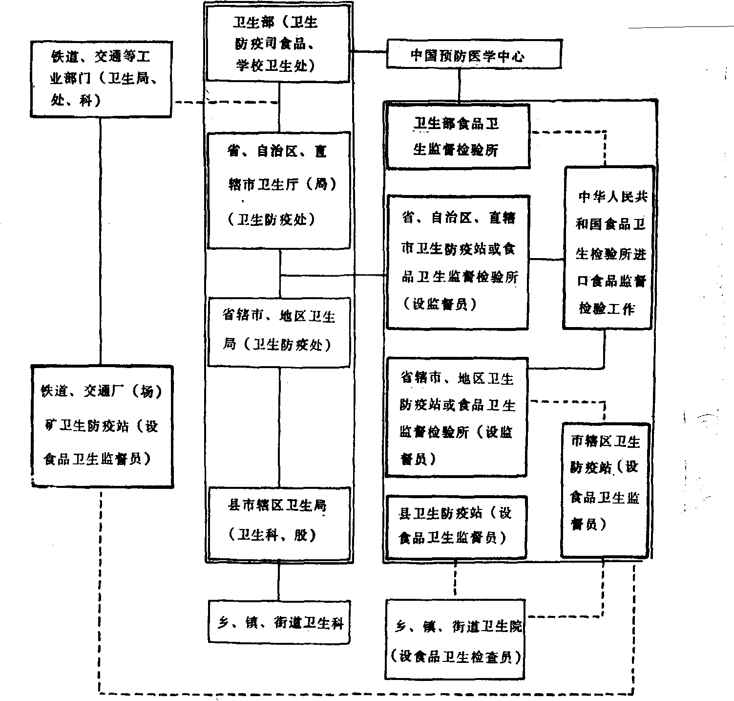 | 释义 | 食品卫生监督机构 食品卫生监督机构我国执行食品卫生法的大量工作是由政府卫生行政部门领导下的各级食品卫生监督机构进行的。我国食品卫生行政和监督体系见附图。