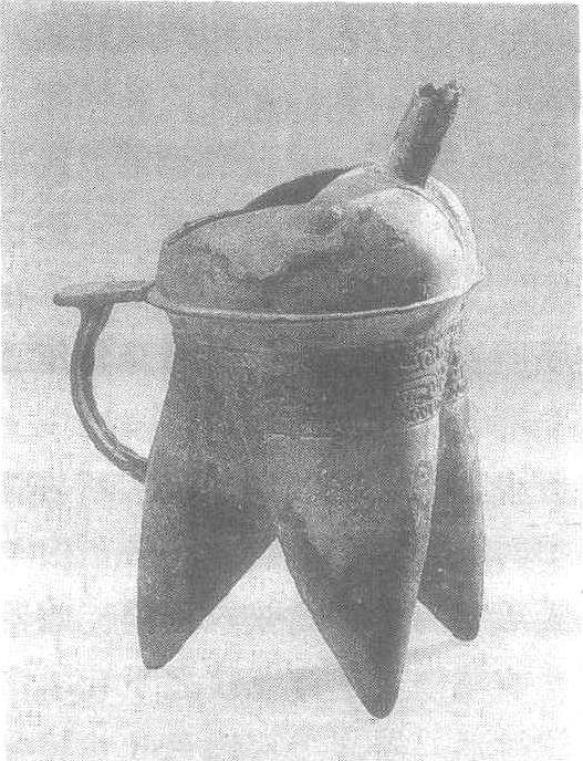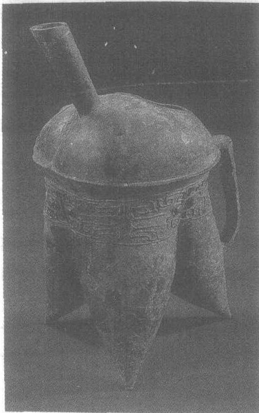 释义 | 饕餮纹铜盉 饕餮纹铜盉商。盛酒器,或酒水调和器。通高18厘米,口径8.5厘米。1977年北京平谷县刘家河商墓出土。北京市文物工作队藏。此盉三个外侈的袋形尖足,有鋬。上有隆起的封口,顶部一长方形口,一筒状流。颈饰流散式的饕餮纹,上下界以圈带纹。为商代早期作品。 ☚ 饕餮乳钉纹铜方鼎 饕餮纹铜罍 ☛ 饕餮纹铜盉 饕餮纹铜盉商。通高25厘米,流长7厘米。1976年河南省中牟县黄店村出土。河南省博物馆藏。盉是古人用来调和酒、水以节制酒的浓淡的器具。《说文解字》:“盉,调味也。”但也可作温酒之用。此盉封顶,上饰对称乳钉两枚,鸡心形口和长管冲天流,似长鼻兽面。宽鋬,三袋状空足。颈部饰三组单线饕餮纹,线条流畅。河南省偃师县二里头商代早期遗址中出有一种陶盉,素面无纹,器形与此相似。这是铜盉中所见的最早形制,为商代前期遗物。 ☚ 素面铜爵 无眼饕餮纹铜觚 ☛ |