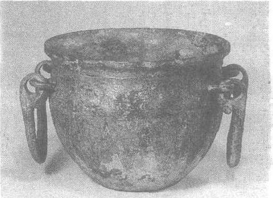 释义 | 饕餮纹铜釜 饕餮纹铜釜商。高24.7厘米,口径32.4厘米。传1946年河南省安阳市高楼庄出土。北京中国历史博物馆藏。此釜侈口,深腹下敛,平底。口沿下饰饕餮纹带,下为云纹带及垂叶纹。腹两侧有垂环耳,圈系用铆固法,耳上饰三角纹和方格雷纹。此器形制在商青铜器中仅见。 ☚ 嵌绿松石饕餮纹铜方罍 四羊铜方尊 ☛ |
