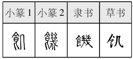 饥2 飢; 篆 隶jī【析形】形声字。古文字形从食,几声。“飢”与从幾得声的“饑”本非一字,今简化字都作“饥”,二字合并为一字。 【释义】《说文》:“饿也。”本义是吃不饱。[饥不暇食]肚子饿了也没空吃饭,形容全神贯注地忙于事务。 【shape analysis】It is the pictophonetic character.The meaning is related to食(shí,eat).It sounds like 几(jī). 【original meaning】Hungry. |