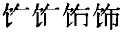 饰 饰shì装饰。《郑风·羔裘》二章:“羔裘豹饰,孔武有力。”毛《传》:“豹饰,缘以豹皮也。”朱熹《集传》:“饰,缘袖也。羔裘而以豹皮为饰也。孔,甚也。豹甚武而有力,故服其所饰之裘者如之。” ☚ 饯 饱 ☛ 饰读音sh·i(ˋ),为i韵目,属i—er韵部。赏识切,入,职韵。 ❶修饰;装饰;装璜。 ❷装扮;扮演。 ❸装饰品。 上一条: 佀 下一条: 飾 饰适shǐ❶倚著。例:把事靠~呆,靠~住再干。 ❍ 搬~大腿走后门! ❷覆盖。例:硬将事捂~住不公开。 ❍ 人已躲~一岸子去了! 《广雅》:“饰,著也。”钱大昭疏义:“此言相倚著也。饰者物之著也。”《正字通》:“饰,覆也。” 饰〔shi〕 zangd: 他~孙猴子。wud zangd send houxzit.shou 饰飾ㄕˋshì三3506名下饭菜。闽语。福建福安〖 〗。   饰shi掩饰,伪装。成语:“文过饰非”。《管子·立政》:“谄谀~过之说盛,则巧佞者用。”(谄谀:巴结奉承。巧佞者:花言巧语献媚的人。用:被任用。) 饰飾shì❶装饰 △ 修~|~物。 ❷饰品 △ 金~|耳~。 ❸遮掩 △ 文过~非。 ❹扮演 △ ~秦香莲。 【注意】右偏旁是“”,不是“布”。 饰❶使美观:~物︱润~︱藻~丨妆~︱文~︱装~︱修~︱涂~︱粉~︱油~︱粉~太平。 ❷装饰品:首~︱衣~︱服~︱窗~。 ❸假托;遮掩:~词︱夸~︱文~︱掩~︱矫(jiao)~︱文过~非︱拒谏(jian)~非。 ❹扮演角色;装扮:~演︱~武松。 饰shì❶ 为使整齐美观而装饰:修饰│饰物。 ❷ 装饰品:首饰│服饰。 ❸ 掩盖:掩饰│文过饰非。 ❹ 扮演:在电视剧《水浒传》中饰演鲁智深。 ❺ 使词句更美:润饰│藻饰。 饰shì❶名词,饰品。《离骚》:“佩缤纷其繁饰兮。”《招魂》:“文异豹饰。” ❷动词,修饰、装饰。《招魂》:“翡帷翠帐,饰高堂些。” ❸ 粉饰,伪装。《七谏·谬谏》:“邪说饰而多曲兮。” 饰shi饰词 饰辞 饰非 饰品 饰物 灯饰 雕饰 粉饰 服饰 花饰 矫饰 夸饰 润饰 首饰 头饰 涂饰 文饰 纹饰 修饰 掩饰油饰 藻饰 增饰 妆饰 装饰 装饰布 装饰品 粉饰太平 修饰一新 装饰材料 黄金饰品 文过饰非 室内装饰 饰shì❶装饰;也指供装饰的东西:有意荣枯草,无心~萎苕。(五十·1151)那两个小丫鬟也都在傍屈膝捧着巾帕并靶镜脂粉之~。(五五·1924) ❷掩饰:自古来多少轻薄浪子,皆以好色不淫为~,又以情而不淫作案。此皆~非掩醜之语也…吾所爱汝者,乃天下古今第一淫人也。(五·120) 饰shì〖动词〗 一、装饰(9)。《李斯谏逐客书》:则是夜光之璧,不饰朝廷。——那么,这些夜光璧就不会装饰在朝廷上。《报任安书》:今虽欲自彫琢曼辞以自饰,无益。——现在,我即使想修饰美好的言辞来装饰自己,也是无益的。《梓人传》:京兆尹将饰官署。——京兆尹要装饰衙门。 二、掩饰(1)。《尊经阁记》:饰奸心盗行。——掩饰奸邪的思想和盗贼的行为。 饰shì❶ 打扮,装饰。《国语·越语上》:“越人~美女八人纳之太宰嚭。”宋濂《送东阳马生序》:“同舍生皆被绮绣,戴珠缨宝~之帽。” ❷ 文辞的修饰加工。《论语·宪问》:“行人子羽修~之。”(行人:官名,外交使节。)《文心雕龙·情采》:“文采所以~言。” ❸ 掩饰。《战国策·楚策一》:“夫从人者,~辩虚辞,高主之节行,言其利而不言其害。”《庄子·盗跖》:“强足以拒敌,辩足以~非。” ❹ 服饰,装饰物。《左传·昭公元年》:“子晳盛~入,布币而出。”《楚辞·离骚》:“佩缤纷其繁~兮,芳菲菲其弥章。” ❺ 通“饬”。❶ 整饬,修。《谷梁传·襄公二十五年》:“古者大国过小邑,小邑必~城而请罪。” ❷ 谨慎。《吕氏春秋·举难》:“自责以义则难为非,难为非则行~。” 饰*飾shiCACE ❶装点,打扮:装~/修~。 ❷供装点、打扮用的物品:服~/首~/窗~。 ❸遮掩,伪装:掩~/粉~/文过~非。 ❹扮演(角色):他在剧中~主角。 装饰 装饰饰(饰装;藩饰;抆饰;校饰;容饰;庄饰;假~) 装(装潢;装裹;装绘;~饰一新) 载(~以银锡) 修 缀 潢 校(校饰) 贲(贲饰) 粉色 粉泽 雕被 彤镂 庄栉 装饰物品使美观:装潢 建筑装潢:营饰 加以衬托或装饰,使原有事物更加美好:点(点缀;点染) 缀 装饰点缀:装缀 装点 点染 点缀装饰:缀饰 装饰表面:饰貌 饰观 饰表 装饰仪表:饰外 装饰门面:妆晃 装门面 装饰屋室:贲室 装饰厅堂:装堂 过分的装饰:长饰 虚伪的装饰:伪饰 (在身体或物体的表面加些附属的东西,使美观:装饰)