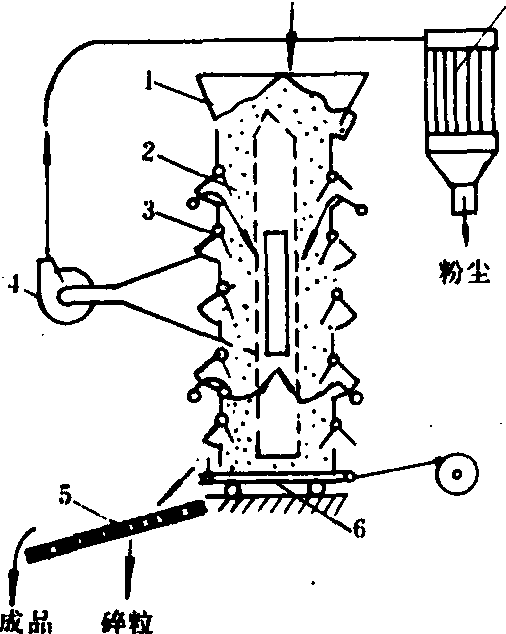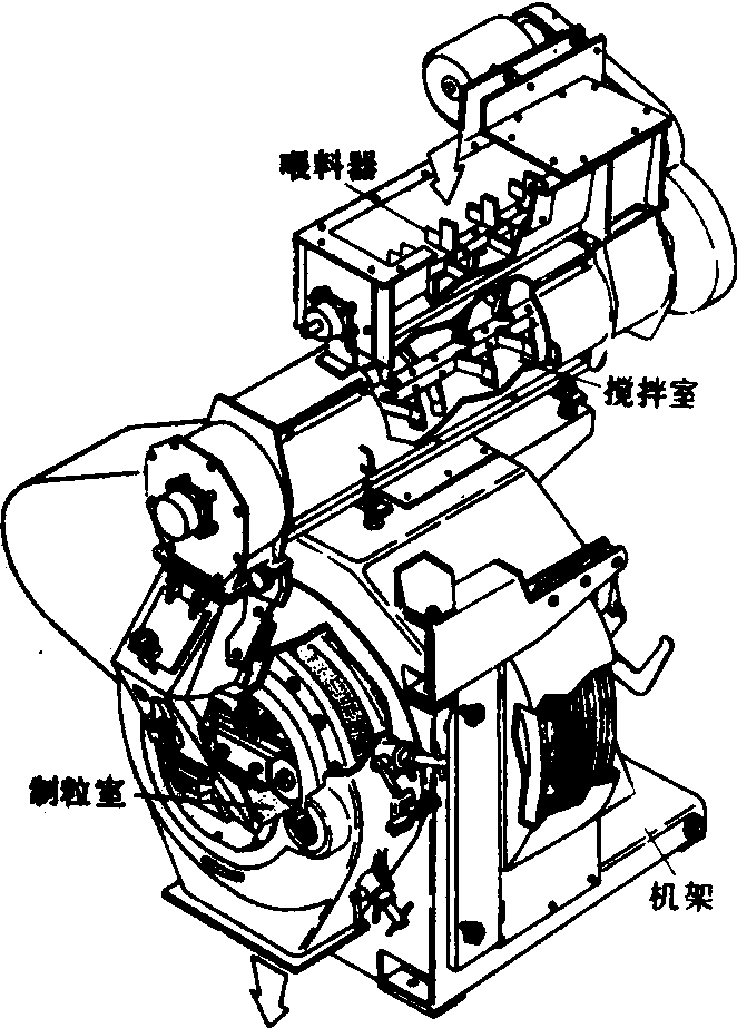 释义 | 饲料制粒机pelleting feed mill将粉状饲料制成颗粒的机械。粉状饲料制成颗粒后:体积减小,便于运输和贮存,也有利于机械化喂饲,避免畜禽拣食,减少饲料浪费,提高饲料利用效果。在压制过程中的高温、高压,还有分解饲料中有毒成分和杀虫灭菌的作用。 图1 环模式饲料制粒机 环模式饲料制粒机成品质量好,生产率高,能耗低,是应用最广的一种机型。 螺旋式饲料制粒机 利用圆筒形壳体内转动的螺旋轴,将粉料向圆筒一端的模孔板推挤,产生压力并强制其通过模孔排出,粉料聚合成圆柱状被伸出在模孔外的切刀切断,成为圆柱形颗粒。适于加工含糖蜜大于30%,或含水量超过25%的软颗粒饲料,需经烘干后才能贮存。 平模式饲料制粒机 利用一对平置在平模顶面上的压辊,对落到平模上的粉料加压,平模在水平面上转动,靠摩擦力带动压辊,使压辊在固定的支持轴上转动,将平模顶面上的粉料加压,并强制其通过顶面的模孔,最后被固定刀切断成颗粒。结构简单,但由于压辊长度方向上的平模圆周速度不同,会引起平模面上各部分的负荷不等,磨损也不均,适用于生产率不大的饲料制粒设备上。 影响制粒机性能的因素 主要是模孔直径,直径越小,生产率越低,能耗越大。如在相同条件下,3毫米孔径的环模要比6毫米孔径的生产率低25%;要压制的粉料颗粒越粗,会加速环模的磨损,生产率降低,能耗增加,但粉料过细,会导致压辊打滑,使生产率降低。评定饲料制粒机性能优劣的指标有:夹杂在成品颗粒中的粉量应小于10%,未成型颗粒量应小于6%,压制过程中饲料重量损失不超过1%等。 附属冷却设备 制粒机出料口处的温度为75~85℃,湿度为14—15%,这种状态下的颗粒饲料易碎,也不宜贮存,需用冷却设备将其迅速冷却,最终温度高于室温不超过8℃,湿度不超过10%。常用的冷却设备为立式冷却器,它具有占地面积小,通风量少和能耗低的优点。冷却器(图2)工作时,物料由料斗进入冷却室,在物料重量作用下,冷却室外表面的百叶窗式吸风门开启,在吸气风机负压作用下,冷空气经吸风门穿过物料夹层和吸风口被风机抽走,同时带走了颗粒料的热量,使之得到冷却; 已冷却的颗粒被往复运动的排料器不断地排到筛面上,经筛分后便获得已冷却的成品颗粒饲料。 图2 立式冷却器示意图 1.料斗; 2.冷却室; 3.百叶窗式吸风门; 4.风机;5.筛; 6.排料器; 7.除尘器 |