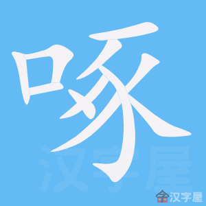 啄,篆文=(口,嘴)+(豕,“彖”的误写,鸟喙),造字本义:鸟用嘴叼食。