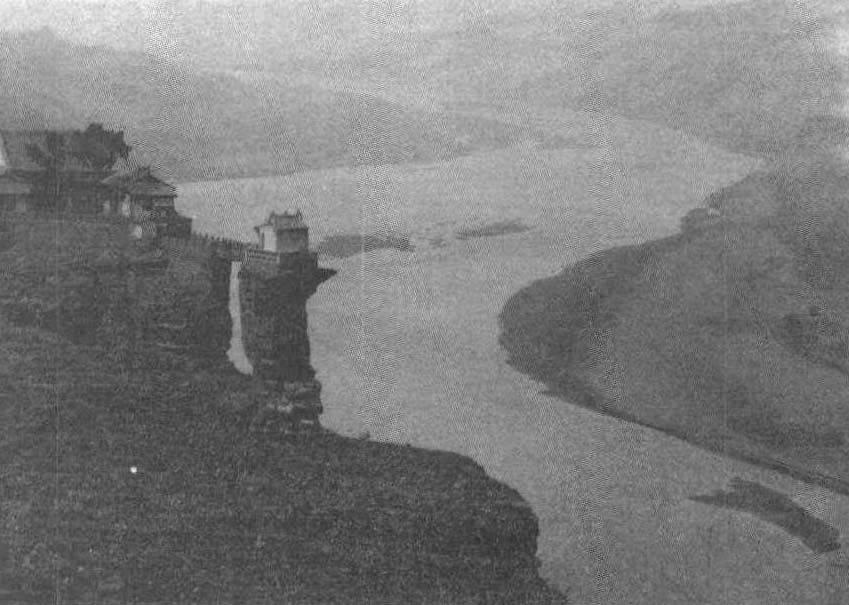 位于县城东北黄河岸边的香炉峰上。峰三面悬空陡立,一面与县城相通。峰前有一兀立巨石,高20余米,围15米,石顶平坦,形如香炉,故名。明万历四十二年(1614),于峰上建圣母祠,左右有配殿,南有山门、石牌坊等。峰东建寄傲亭,置身亭上如凌空际,俯视黄河,波涛万顷。峰前巨石上建一小阁,内供观音塑像。峰与巨石间横木为桥,长3米,名曰断桥,人行桥上,十分惊险。寺依山临河,夕阳西下,峰、寺影落水中,恰似传说中海上蓬莱,故有“小蓬莱”之称。