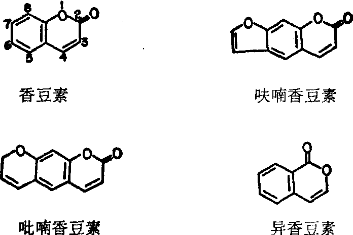 根据化学结构,香豆精类化合物可分为香豆素、呋喃香豆素、吡喃香豆素和异香豆素等。