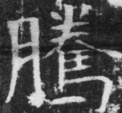 騰騰(腾)Téng现行较罕见姓氏。今天津之武清,河北之黄骅,山东之鱼台、平度,山西之太原,广西之田林,贵州之从江,云南之河口、陇川,四川之合江等地均有分布。汉、壮、傣、土家、阿昌等多个民族皆有此姓。《清通志·氏族咯》 亦收。《中文大字典》 注引《万姓统谱》 云: “腾本姓滕,避难改焉。今开封有此姓。” 汉代有腾是,长乐谒者; 又有腾抚,北海相; 元代有腾香; 清代有腾云辉,任千总,祀昭忠祠。 騰téng❶奔馳。杜篤《論都賦》:“命騰太白,親發狼弧。” ❷騰起,跳躍。司馬相如《上林賦》:“隃絶梁,騰殊榛。”傅毅《七激》:“騰虛鳥踴,莫能執御。” ❸上升。揚雄《甘泉賦》:“騰清霄而軼浮景兮,夫何旟旐郅偈之旖柅也。”王延壽《魯靈光殿賦》:“飛梁偃蹇以虹指,揭蘧蘧而騰湊。” ❹乘,駕。《漢書》賈誼《弔屈原賦》:“騰駕罷牛,驂蹇驢兮。”班固《西都賦》:“陳輕騎以行炰,騰酒車而斟酌。” ❺挪移。應瑒《馳射賦》:“觀者并氣息而傾竦,咸側企而騰移。” ❻用同“媵”。傳送。傅毅《舞賦》:“騰觚爵之斟酌兮,漫既醉其樂康。” 騰“腾”的繁体字。 上一条: 腾 下一条: 滕 腾騰{}五6635①动把东西从这儿移到那儿。西南官话。四川。张慎仪《蜀方言》:「物自此移彼曰~。」②动传;传送。⑴客话。广东惠州、梅县。⑵闽语。广东潮州。◈ 章炳麟《岭外三州语》:「传车曰~,传送亦曰~。」③动稍停,停顿;思索一下,打个主意。⑴兰银官话。甘肃兰州〖 〗。走累了,咱们~一下歇口气儿走吧!⑵西南官话。云南玉溪〖 〗。他要二十块钱儿再我~都不打一个,就掏给他了。湖北随州。④动有意拖延时间。⑴东北官话。东北〖 〗。都什么时候了,你还~着不走‖时间已经很晚了,不能再~了‖时间不多了,请你别~了。⑵西南官话。四川成都〖 〗。大家都~起不开腔‖做家务事,你两口子有啥子~头!⑤动把已熟的食物,放在蒸笼里再蒸蒸热。⑴东北官话。东北〖 〗。再~两个饽饽。⑵冀鲁官话。河北东部〖 〗。馒头早凉了,等~~再吃。⑶江淮官话。江苏北部。《西游记》第七七回:「我有些儿寒湿气的病,要他~~。」⑷西南官话。云南昭通〖 〗。~冷饭‖~馒头。⑥动相随同行;随从;送。⑴客话。广东惠州、梅县、潮州。章炳麟《岭外三州语》:「三州谓行止相随为『~』。」罗翙云《客方言・释言》:「今语人相随从同行止谓之媵。」段玉裁注:「今文媵作~。」⑵闽语。福建。1922年《福建新通志》:「送谓之~。」广东潮州。⑦动还。闽语。福建。1922年《福建新通志》:「还亦谓之~。」又:「以物还人曰~。」⑧动嫁女。闽语。福建。1922年《福建新通志》:「嫁女曰~。」⑨动泼。吴语。浙江绍兴。⑩动颠簸。西南官话。四川成都〖 〗。汽车在坑坑洼洼的路上行驶,坐在上面~得很。湖北随州。⑪动发抖。西南官话。湖北随州。⑫形(人的身)高。吴语。浙江丽水〖 〗、景宁〖 〗。⑬副猛地;忽然。⑴冀鲁官话。河北东部〖 〗。脸~地红了。⑵兰银官话。甘肃兰州:~地起来猛地立起身。⑭副很;甚。西南官话。四川成都〖 〗又〖 〗。饿~了‖吓~了‖人家把他整~了整得厉害。⑮象声撞碰发出的声音。中原官话。河南郑州〖 〗。侯书凡等《河南传统曲目汇编》三弦集第二集:「~,一头碰住迎壁墙。」「~!一头碰到石碑上。」   騰腾(2次) ❶跳跃。或~或倚《士》 ❷谓传语。~众车使径待《离》 騰❶僭踰相侵犯也。《詩經·魯頌·閟宫》: “不虧不崩,不震不騰。” 鄭玄箋:“震、騰,皆謂僭踰相侵犯也。” ❷當作“媵”,送也。《儀禮·公食大夫禮》: “衆人騰羞者,盡階不升堂。” 鄭玄注: “騰,當作媵。媵,送也。” ❸乘匹之名。《禮記·月令》: “是月也,乃合累牛騰馬,遊牝于牧。” 鄭玄注: “累、騰,皆乘匹之名。” 陸德明 《經典釋文》: “騰,大登反。” 騰tengF276 “腾”的繁体。 騰téngT067 “腾”的繁体。 〖騰〗 粵 tang4〔藤〕普 ténɡ ❶ 本指馬跳躍,後來泛指跳躍。莊周《莊子.逍遙遊》:「我〜躍而上,不過數仞而下。」(仞【粵jan6〔孕〕普 rèn】:古代長度單位。) ❷ 飛騰,翻騰。王勃《滕王閣序》:「〜蛟起鳳。」(蛟【粵 gaau1〔交〕普 jiāo】:傳說中一種能引發洪水的龍。) ❸ 傳開,擴散。蘇軾《石鐘山記》:「桴止響〜,餘韻徐歇。」(桴【粵 fu1〔膚〕普 fú】:敲擊。)