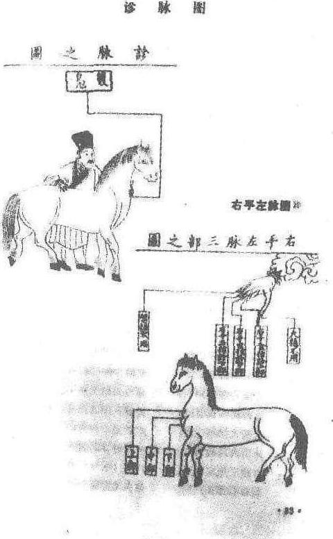 释义 | 《马书》Special Work on Equine Di-seases明代兽医著作。杨时乔等编。该书原序落款是“万历二十二年,岁甲午”。由此可知,书成于1594年。书分14卷: 第一、第二卷以养马、马政和相马法为主; 第三至第十二卷主要介绍中兽医的基本理论和病证诊疗技术, 并含有兽医针灸疗法; 第十三卷是药方; 第十四卷是驼病。理法方药具备, 内容充实, 体系完整, 因此, 有较大参考价值。北京图书馆现珍藏有两部残本 (缺第十二卷及第十四卷, 第十三卷也缺损严重)。该书在1958年全国中兽医研究工作会议上列入整理规划, 经北京农业大学吴学聪整理, 1984年农业出版社出版点校本。 《马书》Special Work on Equine Disea-ses明代的一部养马、相马、疗马专著。作者杨时乔(?~1609),字宜迁,号止庵,江西上饶人。明史有传。该书是作者任太仆寺卿时主持编纂,目的是纠正马政久隳的时弊,振兴明王朝军马实力,以便“亲犁虏庭”。书成于万历二十二年(1594),共十四卷。卷一养马法,卷二相马法,卷三疗马法、马师皇问对脉色论,卷四运气症候、八证图论,卷五脏腑,卷六针烙,卷七造父八十一难经,卷八疮黄疔毒、一十六般蹄痛病、马母孕病,卷九为三十六起卧图歌,卷十天王七十二大病形候,卷十一痊骥通玄三十九论、痊骥通玄四十六说,卷十二为七十二症图说,卷十三药方,卷十四骆驼。该书内容丰富,体系比较完整,有自己的论点。例如,将讲马体经络和骨骼的王良先师天地五脏论列在针灸卷中,与讲脏腑学说的另外三篇五脏论分开;增添卷首按语,指明卷内特色和应用范畴;指明环境对疾病的发生和发展的影响,治疗方法因地制宜地灵活运用。该书保存了一些已失传的古兽医文献,如《针刺论》、《痊骥通玄三十九论》、《四十六说》等。 《马书》诊脉图 《马书》Works on Equine Medicine明代畜牧兽医专著。杨时乔等撰。本书成于万历二十二年(1594),全书十四卷。卷一养马法,卷二相马法,卷三疗马法(马病诊断),卷四运气症候(五运六气和辨证),卷五脏腑(病因病理和发病论),卷六针烙,卷七造父八十一难经,卷八疮黄疔毒和蹄痈,卷九三十六起卧图歌,卷十天壬七十二大病形候,卷十一痊骥通玄三十九论和四十六说,卷十二七十二症图说,卷十三药方,卷十四驼经。现在仅有北京图书馆所藏此书的1~11卷残本。 马书明代关于养马、相马和疗马的专著。编成于1594年。作者杨时乔,字宜迁,江西上饶人。万历时官居太仆寺卿,熟悉牧政。全书14卷,现存11卷。辑录了16世纪以前的大量资料,有一定的参考价值。 |