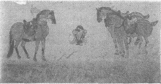 释义 | 马夫与马图壁画 马夫与马图壁画初唐。纵33厘米,横77厘米。甘肃省敦煌县莫高窟第431窟西壁下层壁画。此为供养人行列的一部分,马夫着裤褶,穿马靴,疲劳之极,手握三匹马的缰绳坐地抱头大睡。三匹膘肥体壮的赭色骏马分立两侧,安静异常,神态中亦露出疲惫。图中人的形态自然写实,生活气息浓厚,三匹马与唐太宗昭陵六骏同一风格,也与唐墓中出土的三彩马颇有相似之处。图中没有自然景物,因透视合理,所以给人以空旷寂静之感。 ☚ 十六观之一(宝树观)壁画 供养人与牛车图壁画 ☛ |