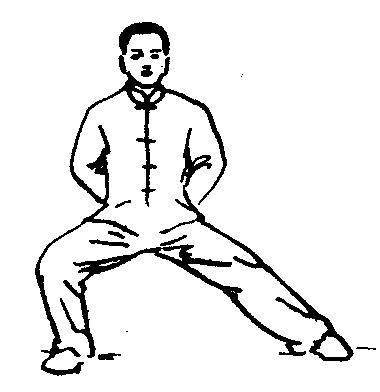 释义 | 马步太极拳基本步型。两脚左右分开,间距约为脚长的3倍。两腿屈膝下蹲。两膝不可超过脚尖。如图。吴式太极拳的马步两脚外撇约30°,两膝与脚尖同方向。 马步 马步 马步主要步型。又名“马裆步”、“骑马蹲裆势”。两脚开步站立,相距约本人身高的二分之一,或以本人的三脚至三脚半,两腿屈膝半蹲,大腿坐平,两脚平行,足尖朝前,或稍内扣,上体挺胸立腰,松肩臀。
