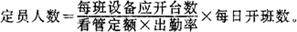 依据企业既定的产品发展方向、生产规模、技术条件和组织形式所规定的各类人员的数量标准。 定员范围包括工人、学徒、工程技术人员、管理人员、服务人员。其基本原则是:节约用人、精简机构、提高工作效率、增加生产。主要方法有:(1)劳动效率定员法。其公式是:  这种方法适合于手工操作、体力劳动的工作岗位。 (2)设备定员法。其公式是:  (3)岗位定员法。 其计算公式为:定员人数=岗位数×每岗人数×每日开班次数(4)按比例定员。即根据职工总数的一定比例来确定各类人员的定员人数。 (5)按组织机构定员。即根据组织机构、职责范围和业务分工来确定定员人数。劳动定员是编制劳动计划、调配劳动力、确定工资基金的重要依据;也是控制非生产人员、提高劳动效率、克服机构臃肿的重要手段。 |