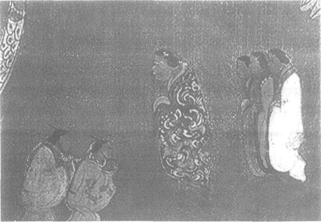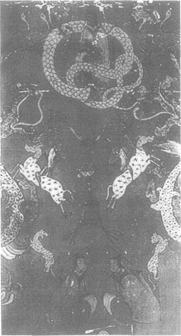释义 | 马王堆一号汉墓帛画 马王堆一号汉墓帛画汉代帛画。1972年在长沙马王堆一号汉墓中发现。长205厘米,上宽92厘米,下宽47.7厘米,呈T形布局的画幅。内容极其繁复,大致分为三部分:下为大海(一说地下),中为人间,上为天境。画幅上段:右上方为太阳,下面是扶桑树和八个小太阳;左上方有月牙,下面是“嫦娥奔月”。正中上部可能是女娲,一说为“烛龙”。周围有瑞鸟仙禽。其下有两个兽面人体骑异兽奔驰之神,分别用绳索共牵一木铎,使之震响。左右各有一龙飞腾。再下有双阙,上蹲双豹。门有守护神看守。画幅中段:是墓主人的现实生活题材。一老年贵夫人扶杖而行,面前有二仆役捧案跪迎,背后三个侍女随行;其下为一组列置壶鼎酒食器物的长案,旁有七个仆役侍奉。画幅下段:有力士型巨人,赤膊站在两条大鱼身上,双手捧托横条形物,借以划分人间和地下。周围环绕以蛇、虫异物。主题似为表现死者祈求长生不死到仙化升天思想。构图颇具匠意,使全图左右对称,上下贯连,重心突出,严密无间。画法上先用淡墨起稿,然后设色,最后勾墨线。人物用线流畅婉柔,动植物和器具用线则刚健质朴,造型茁壮雄浑。使用颜色有矿物色、植物色和动物色三种,对比强烈,色彩绚烂。是美术史上重要作品,显示了上承战国下启后汉的绘画发展趋势。 ☚ 缯书画像 马王堆三号汉墓帛画 ☛ 马王堆一号汉墓帛画 马王堆一号汉墓帛画出土于湖南长沙市郊马王堆 一号汉墓,画幅由三条丝织的精细绢帛拼接而成,中间一段为一整条,长205厘米,宽47.7厘米,上部在这条长绢左右各拼一条,上边横长92厘米。这幅帛画出土时复盖在内棺上,面朝下,帛画呈T形,最上横边裹一根竹竿,上系 一丝带,可以悬挂,是当时由职事用长竿挑起,走在灵柩前,引死者灵魂升天用的。按墓中遗册称其为非衣,按文献记载应称为铭旌。画面内容分三部分,即天国、人间、阴间(或称幽都、冥府)。天国部分,被画在画面的顶部,占据的面积最大,顶部正中画一人首蛇身的女娲,其右为金乌载日,即太阳神; 其左为阙月、蟾蜍和奔月的嫦娥,日月之下分别有一巨龙升空,身姿矫健,昂首向着女娲。日下有扶桑树,树间有八个小太阳,当是古代日出扶桑传说的写照。古人不理解日出日落是由于地球围绕着太阳转动的道理,而理解为有神在背后操纵。每天日出日落,是因为有十个太阳轮流值班,太阳由大海升起之后,先落在扶桑树间休息,再按次序升上大地,为人间送去温暖。这就是古代传说的十日并出。太阳的转动是由三足金乌驮着飞行天空。女娲座下中部为两司铎骑神兽振铎作响的情景,司铎头上有二鹤对舞。女祸左右亦有五鹤(左二右三)举颈长鸣。与人间相接部分为天门。门口双阙下各有一值日神把关,《楚辞》称之为司阍。门阙上各爬一豹,按楚辞招魂记载,天门有九重,每门都有虎豹把关。人间部分,描绘墓主人在人间的生活片段。侯夫人刘氏拄杖站在中间,其前的二仆人跪下托盘进食物,夫人身后有三个仆人服侍。人物的衣冠服饰皆可与文献记载相印证,像主发上饰有白珠,为贵妇人的首饰,《后汉书舆服志》有“公卿列侯,中两千石,二千石夫人,绀缯国,黄金龙首衔白珠……”的记载。可以肯定中间拄杖的老妪是墓主的肖像。人物头上、天门之下为蝙蝠华盖,看上去很像是一个罩篷,这大概就是《楚辞·招魂》里所讲的“像设君室,静闲安些”。从这点来看,似乎又可以理解为墓主灵魂的安息之所。人物脚下所踏巨板,由 一立柱支撑,立柱两旁有二豹把守,二豹之下为二龙穿璧,二龙一青一红,二龙头分别挨着华盖边缘,龙尾直达画面最底部。二龙张开巨口,吐出红舌,鼻端龙须飘洒,充满生机。阴间部分,阴间又称幽都或冥府,玉璧垂挂着彩帛帷帐,帷帐下垂玉璜,这是楚地豪华帷帐的一般规格,帷帐的下边,是室内摆着饮食器具的场面,有鼎、壶和叠在一起的羽觞,其中一壶和羽觞内放有长柄的勺。两边对坐着七人,似是有所等候。有一大食案,下有四足,旁有横杆,上罩棉袱,这是送食物到宴席上的用具。此类用具,在清末封建贵族中还在使用着。这里可能是在准备开筵,楚国人认为,人死后精神不灭,人在阴间照常可以过与人间一样的生活。所以这组情节可以理解为墓主列鼎而食的情景。帛画的下端,正中有两条鳌交互着,两边各有一龟,龟背上各立一鸱枭,这就是 《楚辞 ·天问》所说的 “鸱龟曳衔,鲧何听焉” 的鸱龟。鳌上有一裸体巨人,双手托举巨板,板象征大地。这个巨人是传说中的大地的主宰禺强(或称土伯)。 马王堆汉墓帛画天国部分 马王堆汉墓帛画人间部分 这幅帛画,表现出汉代人的极为丰富的想象力和高超的绘画技巧,在构图和表现方法方面,作者把幻想的天上与地下及人间巧妙地结合起来,但又是有机地联系着。绘画技法,基本上用单线勾勒,再平涂颜色,色彩绚丽,使用黑白灰紫蓝黄等色,线条如铁线描,细劲有力,形象生动,富有 一定的个性表现。构图采取围绕中轴线左右对称的布局,形象安排井然有序。 ☚ 马王堆汉墓帛画 秦汉漆画 ☛ |