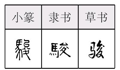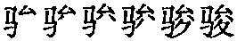 【提示】马,位于字左时,末笔横改提。 夋, 中间是 ,旧字形是 。 *骏(駿)jùn10画 马部 良马: ~马。 骏駿jùn古代形声字。从马(馬),夋(qūn)声。好马。现常用于骏马。 骏駿★繁◎常★常