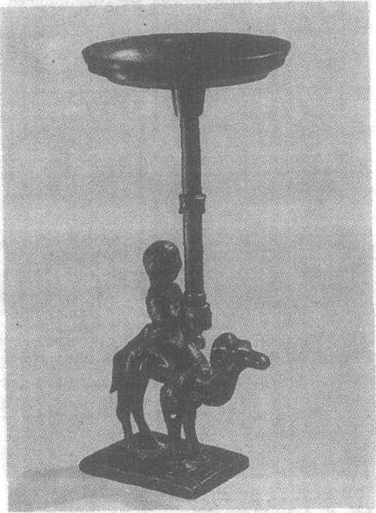 释义 | 骑驼人形铜灯 骑驼人形铜灯战国。通高19.2厘米,灯盘径8.9厘米,深1.7厘米。1965年湖北省江陵望山出土。湖北省博物馆藏。灯为照明用具,形式多种多样。一般上有浅盘,用以盛油或插烛。此灯设计精巧。骆驼站立在一小方座上,驼背骑一人,双手捧一圆形灯座,灯盘的长柄插入座内。长柄间有节。人像与骆驼的造型都很生动逼真。 ☚ 错金银铜奁尊 铜环权 ☛ |