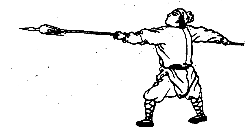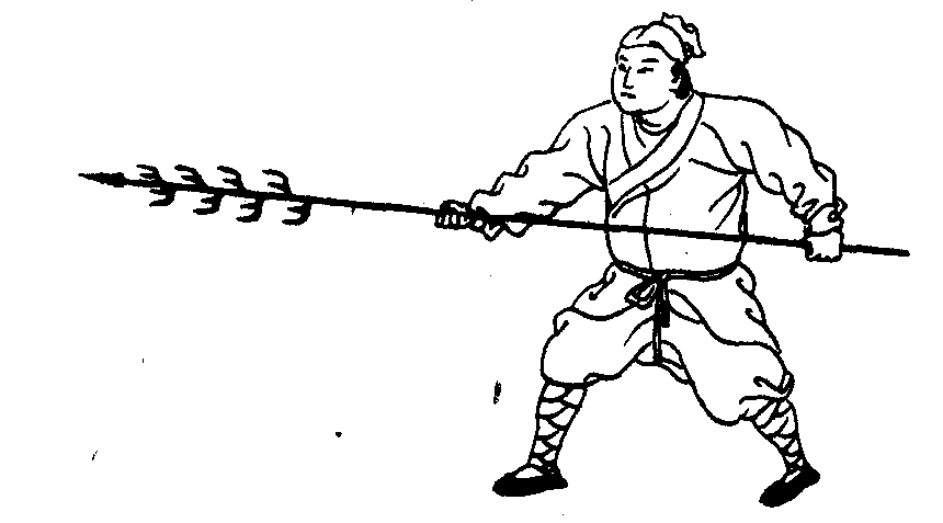 狼筅技法。《纪效新书·狼筅总说篇》“骑龙势,闭门之法上骑龙,下闸高擎大有功。误若当前披一下,劝君眼快脚如风。”
