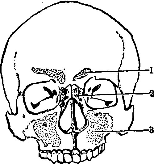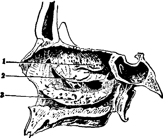 释义 | 骨性鼻腔bony nasal cavity系鼻腔的骨性结构部分。骨性鼻腔后面颅的中央,上邻颅腔,下邻口腔,两侧邻接筛窦、眶和上颌窦。鼻腔以鼻中隔分为左右两半。鼻中隔多偏向1侧由筛骨正中板、梨骨及鼻中隔软骨构成。鼻腔的前口为梨状孔,后口为成对长方形的鼻后孔。鼻腔顶,其前部由鼻骨构成鼻梁,中部是颅前窝的底,成自筛骨的筛板,后方是蝶骨体。鼻腔底为硬腭的上面。鼻腔侧壁有向腔内突起的上、中、下3个鼻甲。鼻腔底和下鼻甲间为下鼻道,其前部有鼻泪管的开口;中、下鼻甲间为中鼻道,有上颌窦、额窦和筛窦前、中群开口;中、上鼻甲间为上鼻道,有筛窦后群的开口。 骨性鼻腔 骨性鼻腔骨性鼻腔是不规则的骨腔,上至颅底,下达骨腭,前借梨状孔向前开口,向后经鼻后孔通咽; 下部较上部为宽,并借鼻中隔分成左、右两半;四对鼻旁窦和鼻泪管皆开口于鼻腔。 图1 骨性鼻外侧壁 骨性鼻腔的交通为: ❶筛孔和盲孔向上至颅前窝; ❷蝶腭孔向外侧到翼腭窝; ❸切牙管向前下经切牙孔通口腔; ❹上鼻道通后筛窦; ❺中鼻通道额窦、前筛窦、中筛窦及上颌窦; ❻下鼻道向上连鼻泪管通眶; ❼前鼻孔通至面部; ❽后鼻孔通咽腔鼻部。 鼻旁窦是上颌骨、额骨、筛骨及蝶骨等骨内气房的总称,位于鼻周围,皆开口于鼻腔(图2)。 额窦位于额骨体内,借中隔分成左右两半,形状及大小的变异较多。窦房各方与颅窝、眶、筛窦、鼻相联属。额窦口经额鼻管开口于中鼻道,近半数的额窦经由筛骨漏斗、半月裂孔再通入中鼻道。 蝶窦位于蝶骨体内,被中隔分成大小不等的左、右两腔,窦与颅腔,鼻腔毗邻,有时窦腔可扩展到大翼甚至枕骨基底部。蝶窦口在前下方为蝶甲部分掩盖,开口于蝶筛隐窝。 上颌窦位于上颌骨体内,呈锥体形,尖伸入颧突、底即 图2 鼻旁窦投影(前面观) 筛窦被额状位的隔板分成前、中、后三组。后筛窦开口于上鼻道;中筛窦组成筛泡,开口于筛泡或其上方;前筛窦居眶板之前,开口于筛泡前上方的筛漏斗,筛漏斗向下通入筛泡前下的半月裂孔,继而开口于中鼻道;半月裂孔常为钩突部分盖住。额窦约有半数经漏斗、半月裂孔通入中鼻道。 鼻旁窦变异多见,有的缺如,如只有一侧额窦; 有的多房,如筛窦可伸展到蝶骨小翼,甚至向上伸入额骨; 有的出现不规则的隔板,如上颌窦可分隔出上、下或前、后分,甚至造成一室与外不通。蝶窦开口通过蝶甲的形式亦多样,窦本身也能扩展到达枕骨底部、大翼、小翼甚或后筛窦。 ☚ 眶 脑颅骨 ☛ |