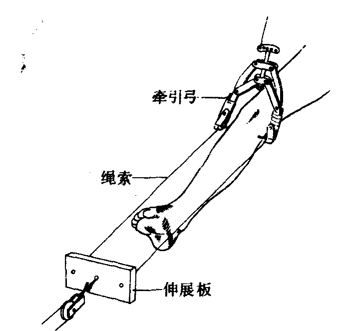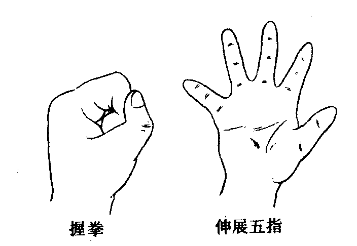 功能锻炼是治疗骨折的重要环节之一。治疗骨折的目的是恢复肢体的正常功能,如果没有正确及时的功能锻炼,即使骨折的整复和固定得再好,肢体的功能往往也不能很好地恢复。如膝关节的病变髌骨骨折后没及时地进行锻炼可造成膝关节周围组织粘连挛缩,以致关节僵直不能弯曲影响生活。虽然骨折愈合良好,但仍没有恢复肢体的正常功能,因此必须在医护人员的指导下,重视功能锻炼靠自己积极而正确地锻炼才能改善。功能锻炼可以促进局部血液循环,改善局部组织的营养状况加速骨折愈合,防止肌肉萎缩和粘连。为了使骨折的肢体尽快恢复功能,可根据骨折不同时期不同要求进行自主锻炼。骨折早期:一般指伤后两周之内,此期以局部疼痛和肢端肿胀为主,因骨痂尚未形成,锻炼方法是在关节不动的情况下做肌肉的收缩和舒张的动作。如上肢骨折锻炼的方法是用力握拳和充分伸展五指(图2—2—50)。下肢骨折锻炼方法是用力收缩和放松股四头肌,检查锻炼方法是否正确,可把手放在膝关节上感到髌骨向上移动,同时肌肉也绷起;或用手推髌骨,髌骨不动都说明是正确的。骨折中期:是指伤后3~6周,此期肿胀基本消失,骨折端比较稳定,除继续坚持早期的锻炼方法外,可做幅度较大的关节活动但不要过度。如下肢可做背屈踝、直伸膝、屈曲髋的股四头肌的锻炼(图2—2—51)。骨折后期:是指伤后6~8周,此期骨折愈合已比较坚固,石膏或夹板已拆除,这期间主要是通过全面的肌肉和关节锻炼恢复功能。可根据不同部位有针对性的加强锻炼,但不能急于求成做不利骨折端稳定的活动。功能锻炼时可能产生轻微疼痛,但停止锻炼即可消失,这是正常现象。一旦锻炼时引起剧痛,锻炼后甚至出现肿胀表示锻炼过量,应注意调整。