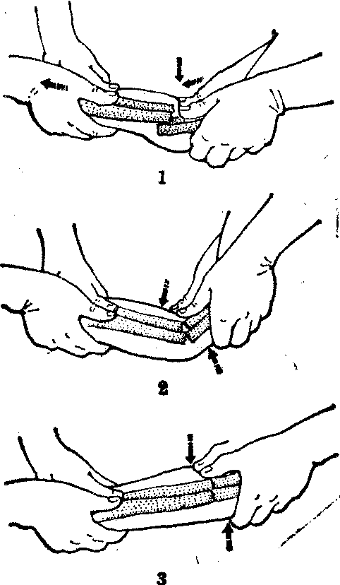 释义 | 骨折的手法复位 骨折的手法复位骨折后通过手法使骨折断端重新获得相对原状的措施为手法复位。骨折后,在断端之间可发生各种移位,如重叠、旋转、成角及侧方移位等。首先要对移位的骨折进行复位,即是将移位的骨折断端沿着移位相反的途径逆行回来。可采用综合复位,也可采用分解复位。复位时应争取一次完成。一次难以完全复位的骨折,可用局部外固定,通过夹板、纸压垫将残余移位逐渐复位。复位时应力争达到或接近解剖复位,使对位即两骨折端的接触面和对线即两骨折段在纵轴上的关系完全良好。有些骨折不能达到上述要求者,可根据病人不同情况尽可能作到功能复位,即虽未达到解剖复位,但骨折愈合后,对肢体功能并无影响。具体要求是骨折断端旋转,分离都必须完全矫正,肢体短缩在成人不超过1cm,儿童不超过2cm,长管骨横形骨折端对端对位达1/3,干骺端对位达3/4,在幼儿向前或向后成角移位因与关节活动方向一致,可在骨痂塑型期自行矫正,但在下肢,成人向前或后成角不超过10°,儿童不超过15°,向侧方成角因骨折处上下两关节活动的平面失去正常关系,例如胫骨骨折成角,膝踝两关节面失去正常平行情况,日后不能自行矫正,必须完全复位。又如股骨干骨折有向侧方成角畸形,如不复位,很难自行矫正,因此膝关节平面不与地面平行,能引起疼痛和创伤性关节炎。整复时间越早越好。选用适量的麻醉,达到复位时不疼痛。整复骨折不应在X线透视下操作,以免对医生和病人造成损害,透视仅是作为整复中短暂观察移位和对线情况用的。在整复前必须制定一个比较成熟的整复方案和适宜的整复手法。应用的手法有下列10种。 图1 旋转回绕 1.按原来移位的相反方向回旋 2. 背对背移位矫正 成角折顶 横断或锯齿型骨折,如病人肌肉发达,单靠牵引力并不能完全矫正重叠移位时,可用折顶手法(图2)。 图2 折顶手法 1. 加大成角 2. 断端相顶 3. 反折对位 端挤提按 以手指直接用力作用于骨折断端,矫正侧方及前后移位,有时重叠、旋转及成角移位矫正后留有侧方移位也以此法对合之。 夹挤分骨 凡是两骨并列部分发生骨折,如桡、尺骨骨折,胫腓骨骨折,掌骨骨折和跖骨骨折,骨折段因骨间肌或骨间膜的收缩,而互相靠拢。复位时,应以两手拇指及食、中、环三指,由骨折部的掌背侧夹挤骨间隙,使靠拢的骨折断端分开,远近骨折段相应稳定而复位。 摇摆触碰 经过以上手法,一般骨折即可基本复位。但横断或锯齿型骨折断端间,可能仍有裂隙。操作者可用两手固定骨折部,助手在维持牵引下轻微地左右或上下摇摆骨折远段,待骨折断端的骨擦音逐渐消失,骨折即紧密对合。 对扣捏合 施行于分离性骨折或粉碎骨折,用两手指交叉合抱骨折部,两手掌对向扣挤,把分离的骨折块挤紧、挤平、挤顺。 按摩推拿 主要是调理骨折周围的软组织,使扭转曲转的肌肉、肌腱随着骨折复位而舒展。 手法复位后用外固定。目前常用的外固定有小夹板,石膏绷带,外展架和持续牵引等。外展架固定适用于严重的上肢损伤伴有严重肿胀者,肩关节骨折和炎症,肩袖损伤等。 ☚ 骨折治疗原则 牵引术 ☛ |