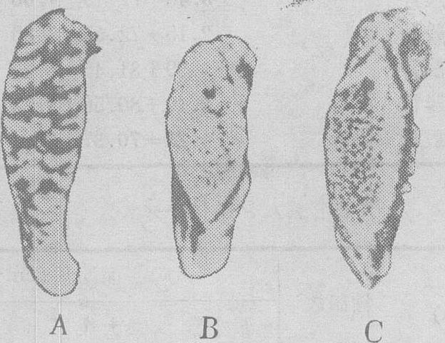 由牙齿磨耗、脱落及齿槽萎缩程度推断年龄: 牙齿磨耗程度,牙齿脱落及齿槽萎缩程度亦随年龄改变而有差异(见“法医牙科学”)。 由下颌骨形状推断年龄: 随年龄增加,下颌体与下颌枝之间的角度、下颌管的位置都有不同的改变。出生后不久的婴儿下颌角体和枝之间成175°角,生齿时成150°,下颌管近于下缘。成人的下颌体与枝几成直角,下颌管居于骨之正中,老年人牙齿脱落,齿槽渐消失, 下颌体与枝之角又变成130°~140°,下颌管近于齿槽椽。此外还可根据颅骨厚度,基底缝愈合情况和牙髓腔的变化等来推断年龄,但都不十分准确。 由耻骨联合面性状推断年龄: 比较可靠。耻骨联合面隆起情况随年龄而变化。在青春后期 (18~24岁)骨联合面上存在数排波浪状隆起,18~19岁时这种隆起很明显(图A),以后逐渐变浅。此时期耻骨联合面背侧缘及腹侧缘不明显。25~30岁时,隆起消失,背侧缘及腹侧缘相继形成,35岁后,背、腹侧缘的上下相互连接。背侧缘且向后扩大,使联合面呈卵圆形(图B)。以后则联合周缘隆起逐渐明显粗壮。50岁时卵圆面上出现散在粟粒样小孔样变化(图C)。50~60岁这一阶段,因耻骨联合面磨损及腹侧缘崩解使耻骨联合面变形,60岁后变形明显,进而呈不规则的磨损状态。 耻骨联合面隆起情况 由四肢骨骨骺融合情况及哈佛氏管直径推断年龄: 上肢骨各部完全融合约在20岁左右,肩胛骨、锁骨在25岁左右。下肢各骨各部完全融合约在20~25岁,比上肢稍晚,足骨除外。胫骨中部骨磨片的哈佛氏管平均直径随年龄的增长而渐次扩大,据此也可估计年龄
