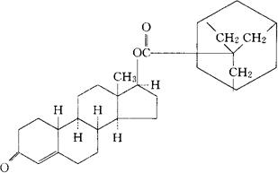 释义 | 勃金刚酯 C29H40O3=436.63 CAS-1491-81-2 17-[(三环[3.3.1.13.7]癸-1-基羰基)氧]雌甾-4-烯-3-酮。 17-[(Tricyclo[3.3.1.13.7]dec-1-ylcarbonyl)oxy]estr-4-en-3-one. 17β-羟基雌甾-4-烯-3-酮1-金刚烷羧酸酯。 17β-Hydroxyestr-4-en-3-one 1-adamantanecarboxylate. 雄激素,同化激素类药。 Bolmantalate. INN,BAN,USAN. |