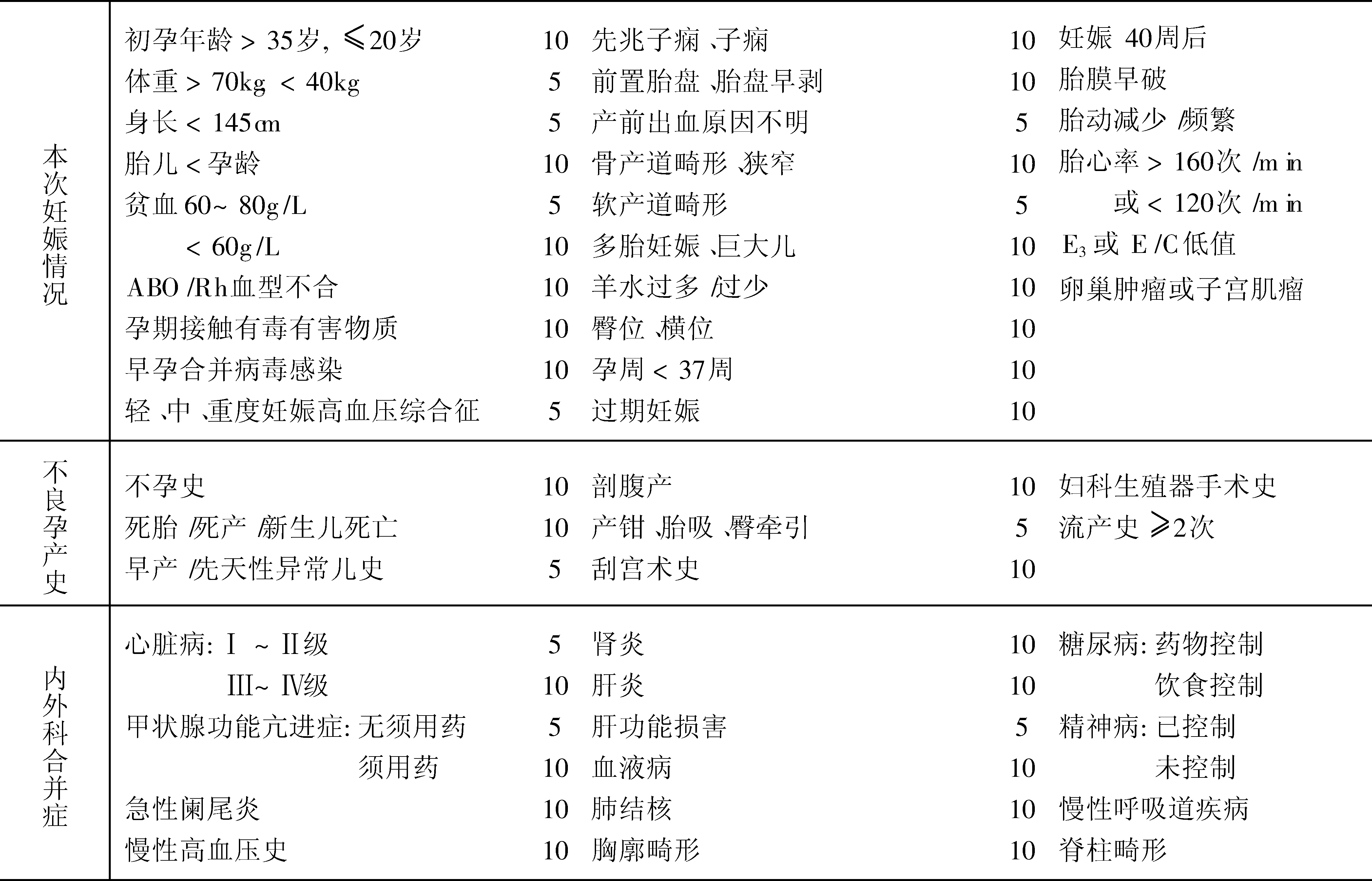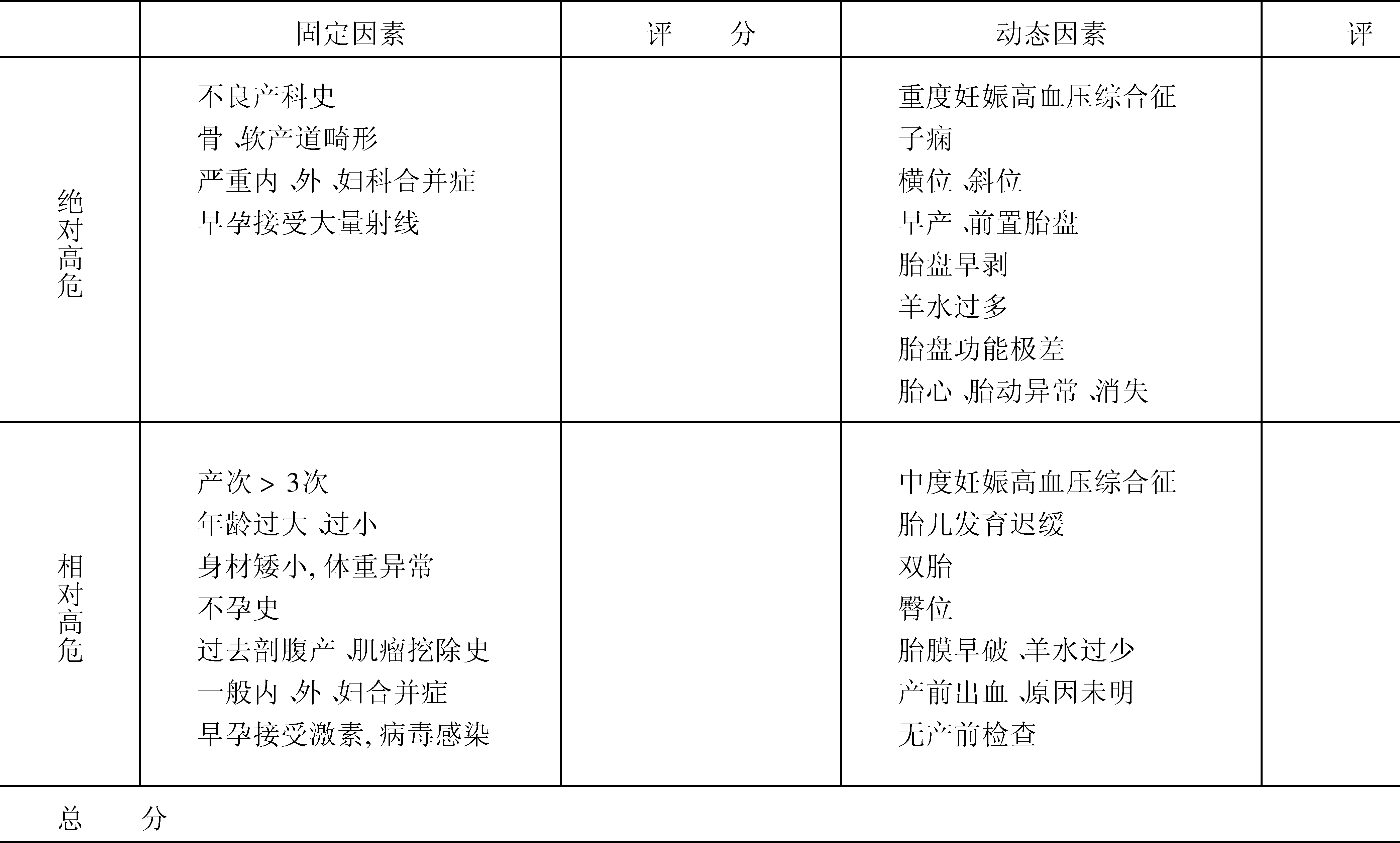 高危孕妇产前评分prenatal score of high risk gravida