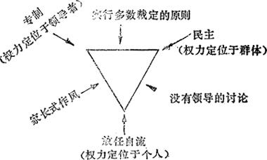 释义 | 勒温领导作风理论剖视图 勒温(K·Lewin)为了分析不同领导作风对群体成员所产生的影响,他在实验研究中将若干11岁男孩分为几组,每组置于一个典型领导作风的成人领导之下,使每个小组都经受专制作风、民主作风和放任自流作风的领导,结果群体成员表现出种种不同的行为。勒温认为,在实际工作情境中,三种极端的工作作风并不常见,大量的领导人采纳的工作作风往往是处于两种极端类型之间的混合型,如图40。 图40 |