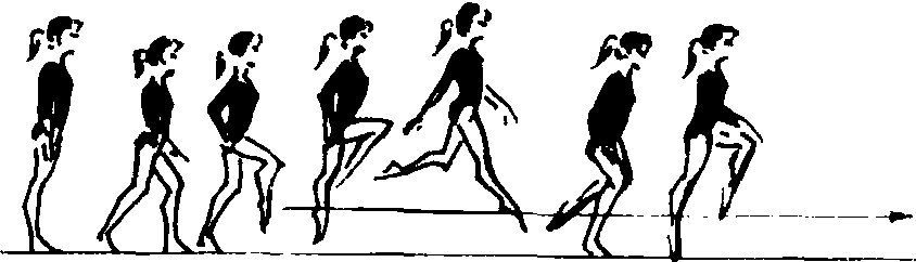 | 释义 | 高抬腿跑 高抬腿跑跑的专门性练习之一。主要用于增强腿部肌肉力量,体会跑时大腿高抬和积极下压动作,提高膝、踝关节的灵活性,发展步频。动作要领:上体正直或稍前倾,重心提起,抬摆大腿约与躯干成直角,随后积极下压,膝、踝关节放松,用前脚掌着地,然后送髋并蹬伸膝和踝关节。在一腿积极下压的同时,另一条腿向前抬摆,使蹬、摆动作协调配合,两臂屈肘前后摆动。教学重点:掌握大腿高抬和积极下压的动作。可按规定的抬腿高度,完成10~15秒钟快速高抬腿练习,以提高抬腿的能力及体会大腿积极下压和蹬、摆动作。也可由行进间快速高抬腿跑自然过渡到加速跑,使专门性练习与跑的整体动作相互结合起来。 ☚ 小步跑 后蹬跑 ☛ 高抬腿跑 高抬腿跑Gaotaitui pao指两腿交替高抬与支撑的小步跑。增强快速抬腿和蹬地力量,提高动作频率以及蹬摆的协调能力。 ☚ 小步跑 俯卧高抬腿跑 ☛ 高抬腿跑 高抬腿跑GaotaituiPao基本步法之一。两腿依次屈膝高抬腿的跑步。