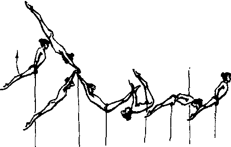 释义 | 高杠支撑后摆成悬垂前摆接低杠后回环 高杠支撑后摆成悬垂前摆接低杠后回环是高低杠低难度动作。60年代前曾被运动员在全套动作中采用。是1963年国家体委公布的少年等级比赛大纲中一组规定的中间动作。目前随着体操技术的发展,杠距的加宽,采用这类动作的运动员逐渐减少。但仍有部分运动员采用此类型动作发展绷杠后空翻下,绷杠转体180°前空翻等高难下法。在大中学校的教学中也有其价值,并被选用为教材。动作要领:高杠支撑屈髋接着向后摆起,同时两臂推杠拉开肩角,然后身体下落成悬垂,当前摆过高杠悬垂部位时,腹部紧贴低杠、积极兜腿、倒肩身体包紧低杠,放手回环,当腿至水平面时制动,手握低杠翻腕抬上体成支撑。保护者在杠中间站立,当练习者后摆下落时,一手托腹,一手托腿,帮助回环。当后回环时,一手托臀一手托背,回环至支撑时一手扶肩一手托腿,帮助控制回环速度使其上成支撑。 ☚ 骑撑后回环 支撑前回环 ☛ |