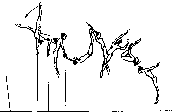 高杠支撑弧形摆转体180°团身或屈体后空翻下