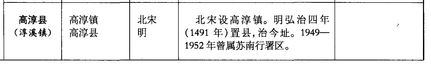 高淳县(淳溪镇)高淳镇高淳县北宋明北宋设高淳镇。明弘治四年(1491年)置县,治今址。1949—1952年曾属苏南行署区。