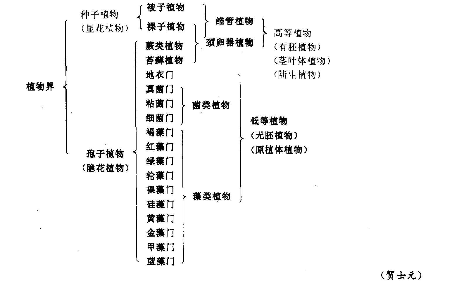 高等植物gāo děng zhí wù形态上有根、茎、叶分化,构造上有组织分化,并且具有胚胎期的一类植物。1906年虞和寅编辑《博物学教科书·绪言》:“其二界之区别,虽颇明了,然此不过就高等动物(例如犬、马)及高等植物(例如松、柏)之比较上而言之。”1913年《民国新教科书——植物学》第一篇:“其形状颇似高等植物者。”1916年何述曾《土壤学》第一编:“死植物之积集,有机物之量亦因以渐增,卒至适于高等植物之生育而后已,所谓农林业上之真土壤者,至是始成。”◇繁植物。 低等植物←→高等植物dī děng zhí wù ← → gāo děng zhí wù低等植物:构造简单、无胚的植物,如菌类、藻类、地衣等。 高等植物:旧时指种子植物,现指有胚的植物,如苔藓、蕨类和种子植物。 【例】 刚毛藻等藻类植物是低等植物,松树、棕榈等种子植物是高等动物。 植物 植物对某些植物的美称:灵草 泛指植物:株(山童无~) 草本植物:草木 地面所生的植物:毛 初生的植物:葱青 幼嫩的植物:子(~姜) 秋令叶红的植物:枫(~叶荻花) 用种子繁殖的植物:种子植物 显花植物 用孢子繁殖的植物:孢子植物 隐花植物 藻类植物:藻(水~;蓝~) 蕨类植物:蕨 能真正开花的植物:被子植物 有花植物 能结子的植物:母(~麻) 有根茎叶分化的植物:高等植物 有胚植物 无根茎叶分化的植物:低等植物 无胚植物 再生或孽生植物:孙(~枝;稻~;竹~) 古籍上说的一种植物:棫 萩 成长的植物体:株(植~;劣~;病~) 粟的幼株:禾 大麻的雌株:苴(~麻) 大麻的雄株:枲(~麻) 植物的株数:棵 植株的大小:棵儿 植物的地下部分:茹(拔茅连~) 植物表皮上所生的丝状物:毛 (生物的一大类:植物)