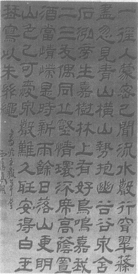 释义 | 高翔隶书五言诗轴 高翔隶书五言诗轴清。纸本。纵101.7厘米,横51.8厘米。上海博物馆藏。高翔(清康熙二十七年—乾隆十八年,即公元1688—1753年),字凤冈,号西塘、犀堂,江苏扬州人。能诗,工书法、篆刻,善画山水和梅花,书法源于汉碑,以擅长隶书著称。书体清润秀逸,结构好以起伏变化较大的笔势强化飘逸的效果。横画呈圆头细颈柳叶身的形态,深得清初郑簠的隶书风貌,有较浓的隶体新调的时代特征。高翔的篆刻,师法程邃,与汪士慎、丁敬齐名。人将其与高凤翰、潘西凤、沈凤并称:“四凤”。高翔为“扬州八怪”之一。清秦祖永《桐荫论画》云:“西塘尤精八分。”清阮元《广陵诗事》云:“(西塘)工八分,晚年右手废,以左手书,字奇古,为世宝之。”此五言诗:“一径入蒙密,已闻流水声。行穿翠绦尽,忽见青山横。山势抱幽谷,谷泉含石泓。旁生嘉树林,上有好鸟鸣。嘉我二三友,偶同丘壑情。环流席高荫,置酒当崝嵘。是时新雨余,日落山更明。山色已可爱,泉声难久听。安得白玉琴,写以朱丝绳。”下款署: “书于五岳草堂,西唐高翔。”款下钤白文〈犀堂高翔〉、朱文〈西唐山人〉两印,起首钤白文〈落笔洒篆文〉印。综观全书,其书受《郙阁颂》等东汉碑刻及郑簠书风的影响,字体方正规整,笔画粗细变化适度,其提按行顿略有飘逸之感,章法布局齐整,有一种端庄秀润之感。 ☚ 金农隶书节临西岳华山庙碑轴 张照草书李商隐东还诗轴 ☛ |