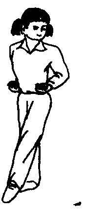 步型之一。为身体直立,后腿挺膝伸直,前腿伸直,以脚尖在支撑脚前点地,上体正直并向一侧拧转的姿势。
