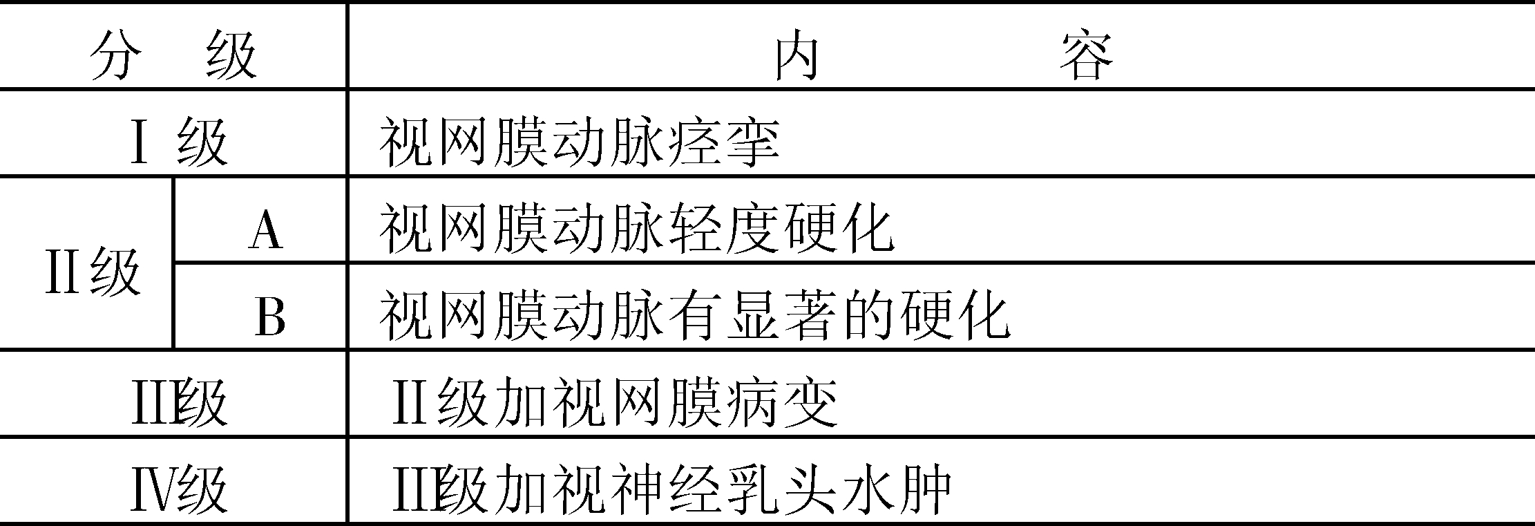 释义 | 高血压病眼底病变分级 高血压病眼底病变分级grading of eyeground change of hypertension全国高血压及心血管病学术会议于1964年在兰州召开,提出以下分级(见下表): 高血压病眼底病变分级 ☚ 冠心病患者视网膜小动脉改变的分级分度 视网膜渗出 ☛ |