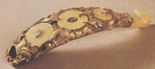 字词 | 包金镶玉嵌琉璃银带钩 |