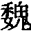 魏 金文;《説文》所無wèi[鬼(意符)+委(聲符)→魏(古代宫門上的樓臺〈魏闕〉;中國周代諸侯國名,中國歷史上的北朝之一〈北魏、魏碑〉。)] [宋] 周邦彦 《黄鸝繞碧樹·春情》:“縱有魏珠照乘,未買得流年住。”(“魏珠照乘”謂不用明珠照亮車乘。治理國家依靠的是人才,而不是珠寶。比喻珍惜人才。典出《史記·田敬仲完世家》) 魏* wèi(17画)