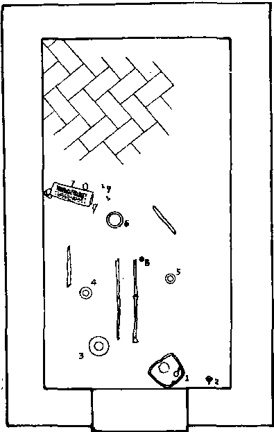 (1陶灶2、3陶釜、4陶盆 5陶甑 6陶水斗 7、8琉璃耳珰) 魏家楼子汉墓平面图 |