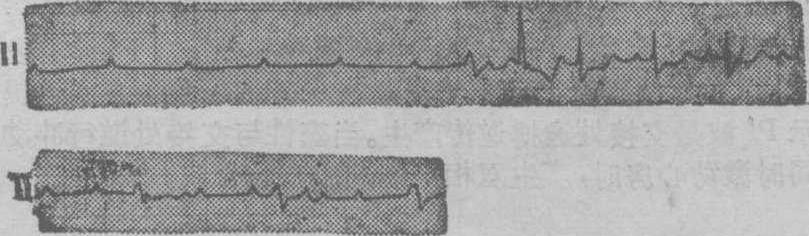 下行为几天后,示完全性房室传导阻滞,心室自主心律。
