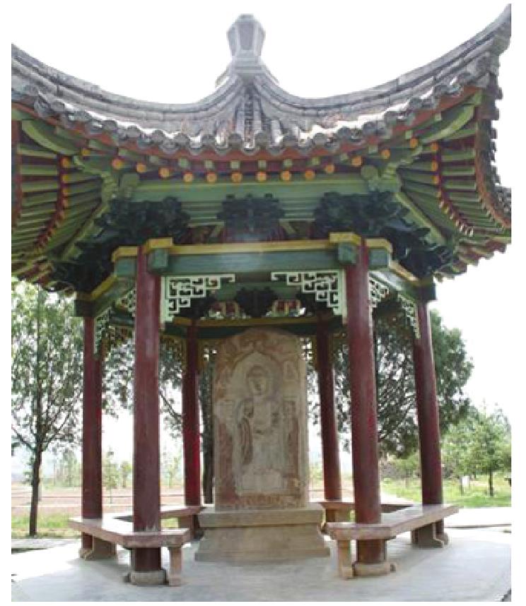 石刻。全国重点文物保护单位。立于清水县永清镇李崖村西赵充国墓东侧。1979 年后清水县文化馆多次勘察保护。为北 周 天 和 二 年(567 年) 南阳、罕二郡太守郡功曹平望清水句法袭为亡妻鲁公姬造释迦定光并等身像的记事碑。清道光初出土。拱首条碑,长 2 米,宽 0.85 米。未见碑趺,右下角残缺。正面高浮雕释迦定光立于莲台上。偏平肉髻,曲眉直目,鼻高嘴小,双耳下垂,面部接近丰圆,颈短,着通肩袈裟。释迦周围雕刻背光、佛龛、小佛、菩萨等。碑阴书刻魏体碑文: “天和二年六月十日□□□□左员外侍郎南阳枹罕二郡太守郡功曹郡平望清水句法袭为亡妻鲁恭姬造释迦定光并等身像二躯息刺史蔡国公士曹从事功曹长晖次息蛭仕遵僧允僧进显昌孙怀□杨氏妹凤姜垣氏女永妃毕氏嫁女女保妃。”为四面造像,继承了北魏的造像风格,又有向隋唐过渡的特征,是研究北周时期历史、宗教、书法等重要实证,具有一定的历史、考古、书法艺术等价值。
