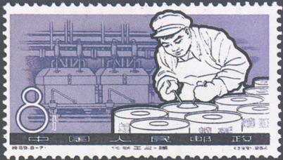释义 | 化学工业 发行日期:1964年12月30日 齿孔度数: 印刷版别:雕刻版和影写版 图幅:48.5×27 全张枚数:50(5×10) 设计者:孙传哲 雕刻者:高品璋、孔绍惠、唐霖坤、孙鸿年 印刷:北京邮票厂 (1)8分 肥料 500万枚 (2)8分 塑料 500万枚 (3)8分 医药 500万枚 (4)8分 橡胶 500万枚 (5)8分 农药 500万枚 (6)8分 酸 500万枚 (7)8分 碱 500万枚 (8)8分 合成纤维 500万枚 (1)-(8) 8枚全 |