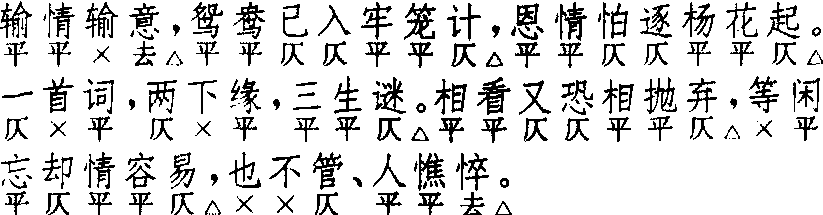 释义 | 鲍老催 鲍老催高濂 《玉簪记》 ![]() 全曲九句:4△,7△,7△。3,3,3△。7△,7△,6△。首句四字句可叠用,如《牡丹亭·圆驾》、《南柯记·御饯》、《东郭记 ·其妻妾不羞也》。第四、五句可作平平仄,或与仄仄平间列。第八句偶有不叶韵,末句偶有作七字句者。〔鲍老催〕常以一支入套,其用二支者中间亦间以他曲。〔鲍老催〕常有误题,如《玉环记·延赏赘皋》为〔滴滴金〕第二式之误题,《三元记·毁券》为〔三段催〕之误题。《拜月亭·虎头遇旧》原题〔鲍老催〕及〔前腔〕三支,实为〔耍鲍老〕、〔鲍老催〕、〔耍鲍老〕、〔鲍老催〕,二曲循环成套,《南音三籁》卷三〔中吕 ·尾犯序〕收此出,其眉批已指出。《牡丹亭·写真》一支,又《冥誓》一支,皆与本格有出入。 ☚ 滴滴金 双声子 ☛ |